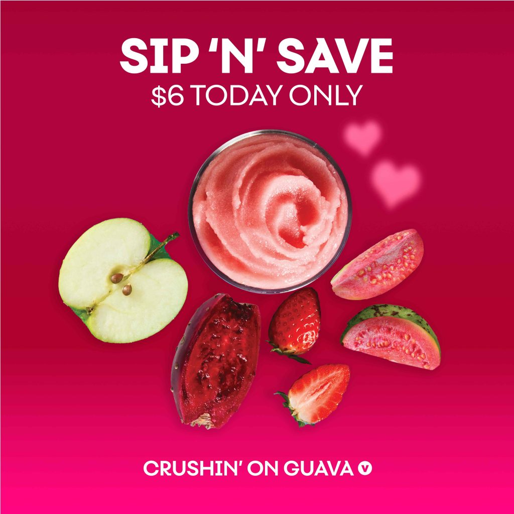 Crushin’ on Guava will be available for $6 when purchased via the Boost app or through mention of offer at register on Wednesday 11th of February.